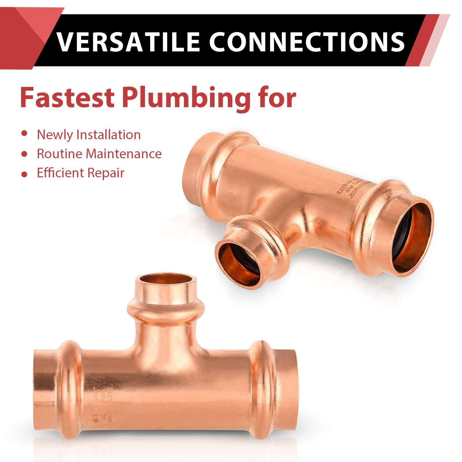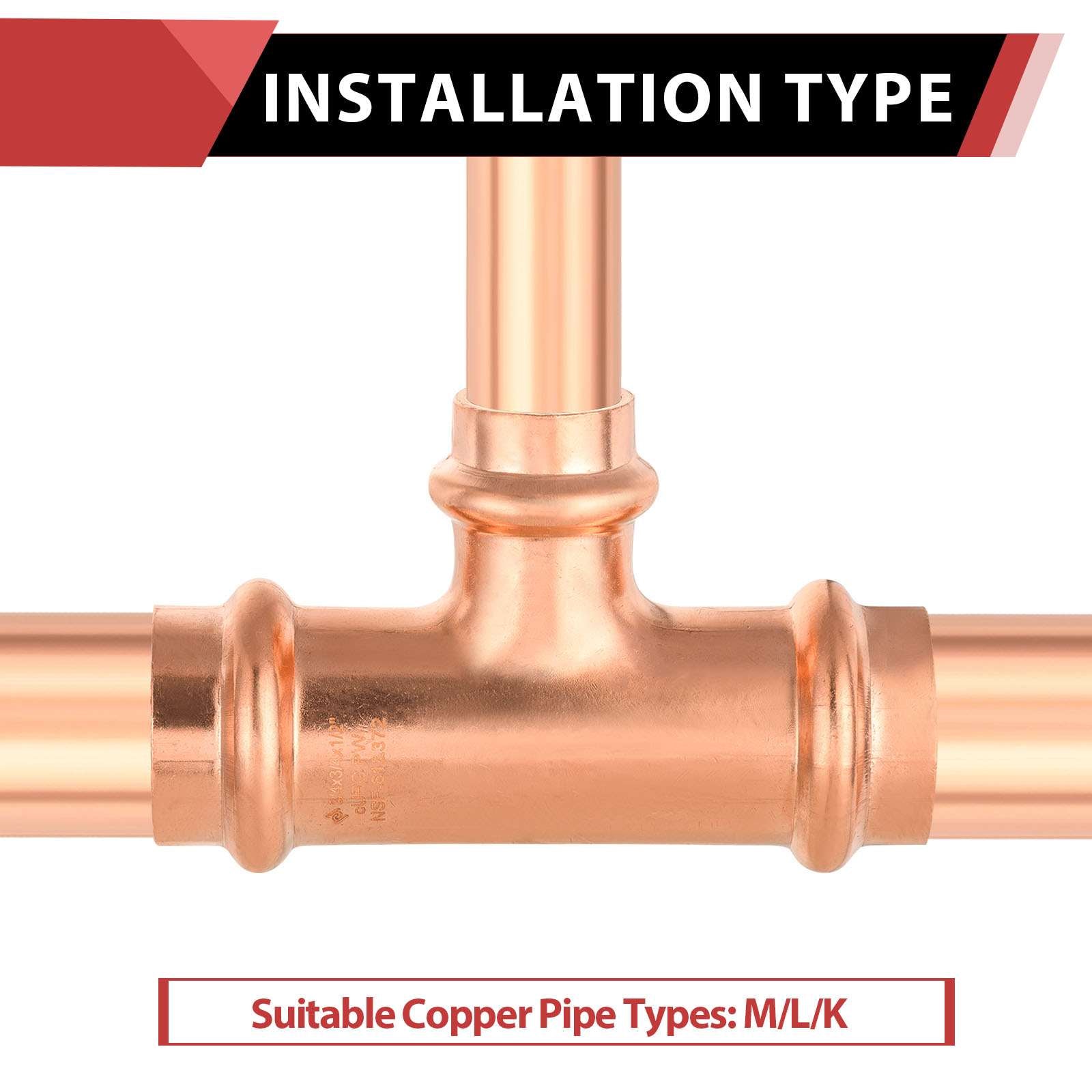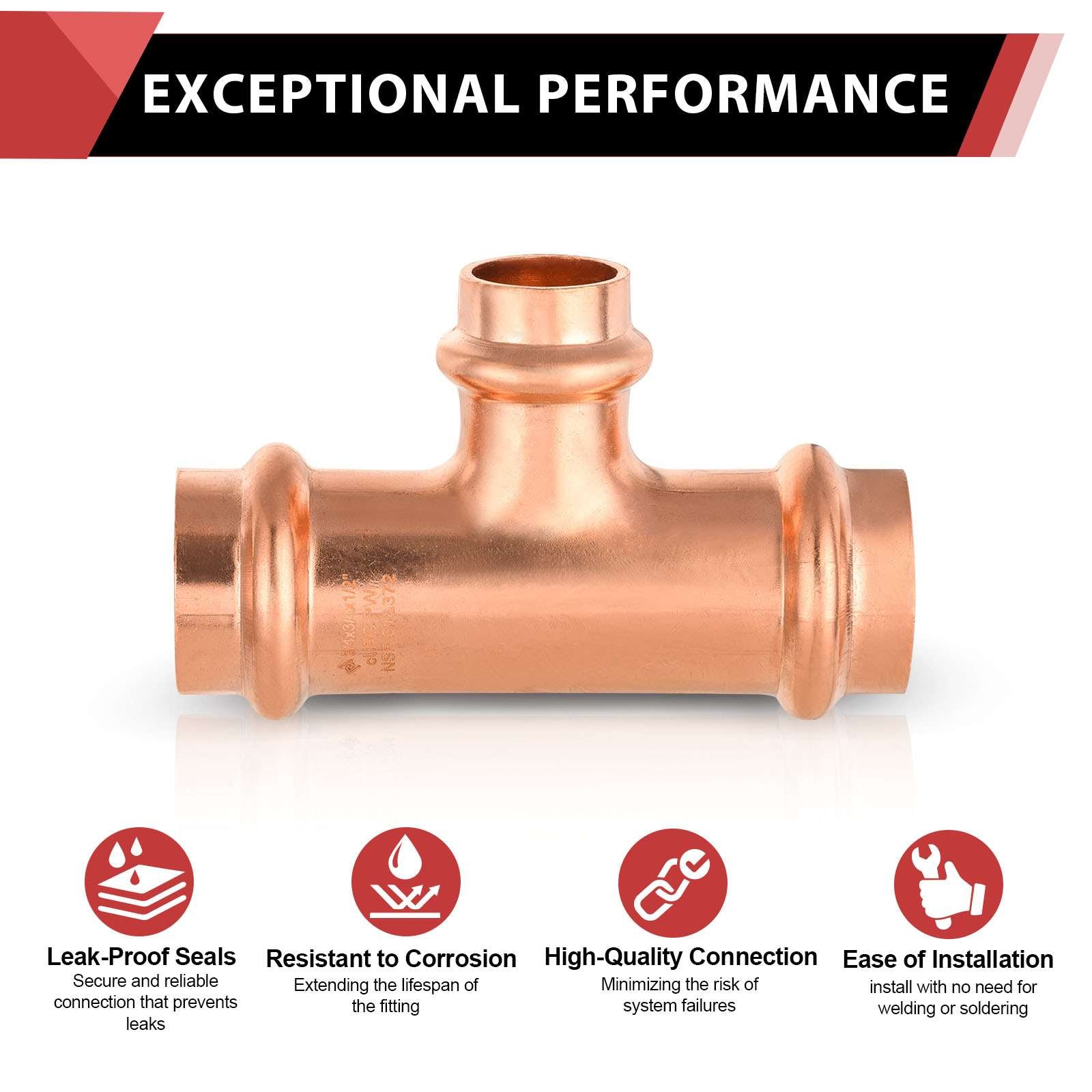 - 1-1/2" x 1" x 3/4" Press Fit Reducing Tee, LF Copper Works on Type M,L or K Copper Tubing