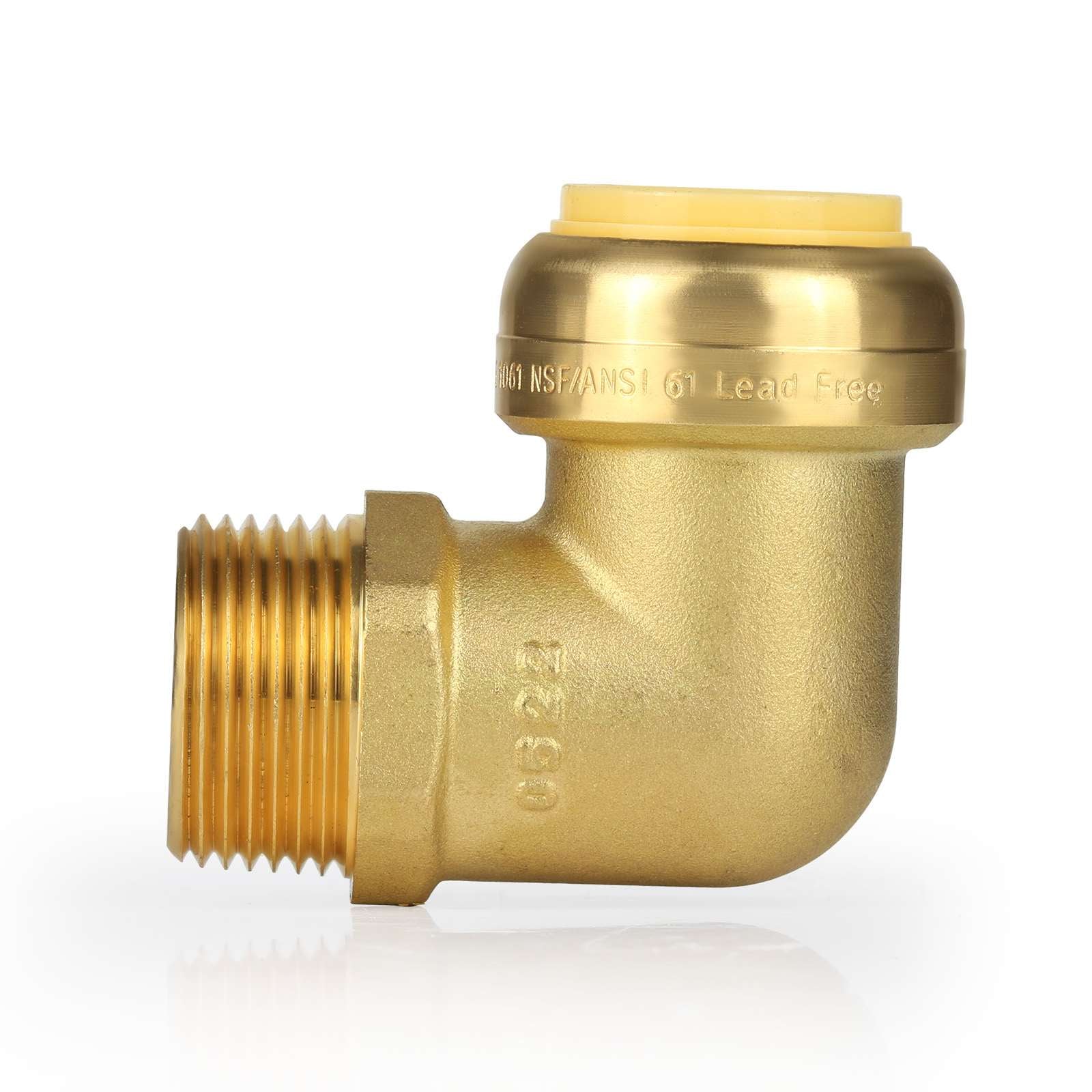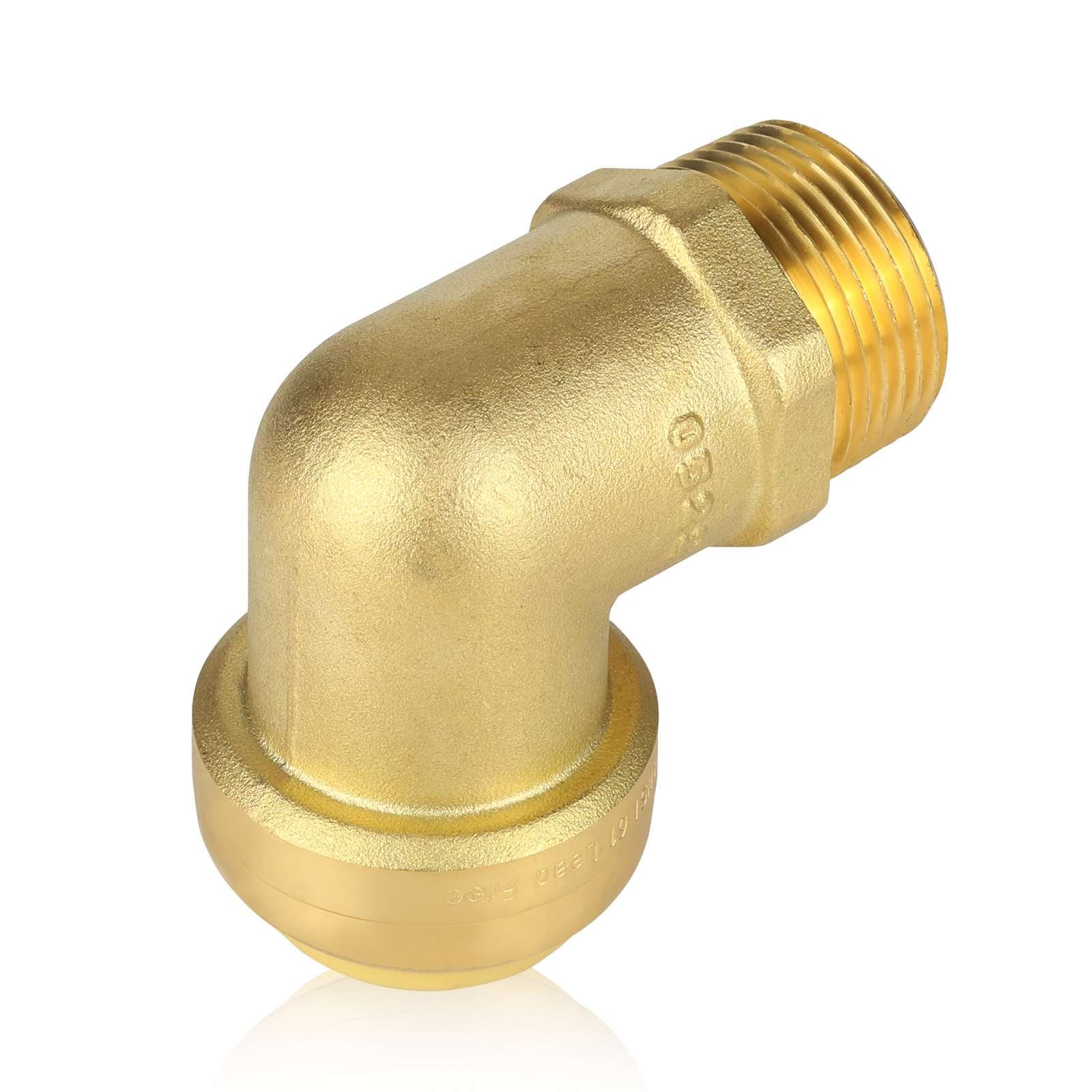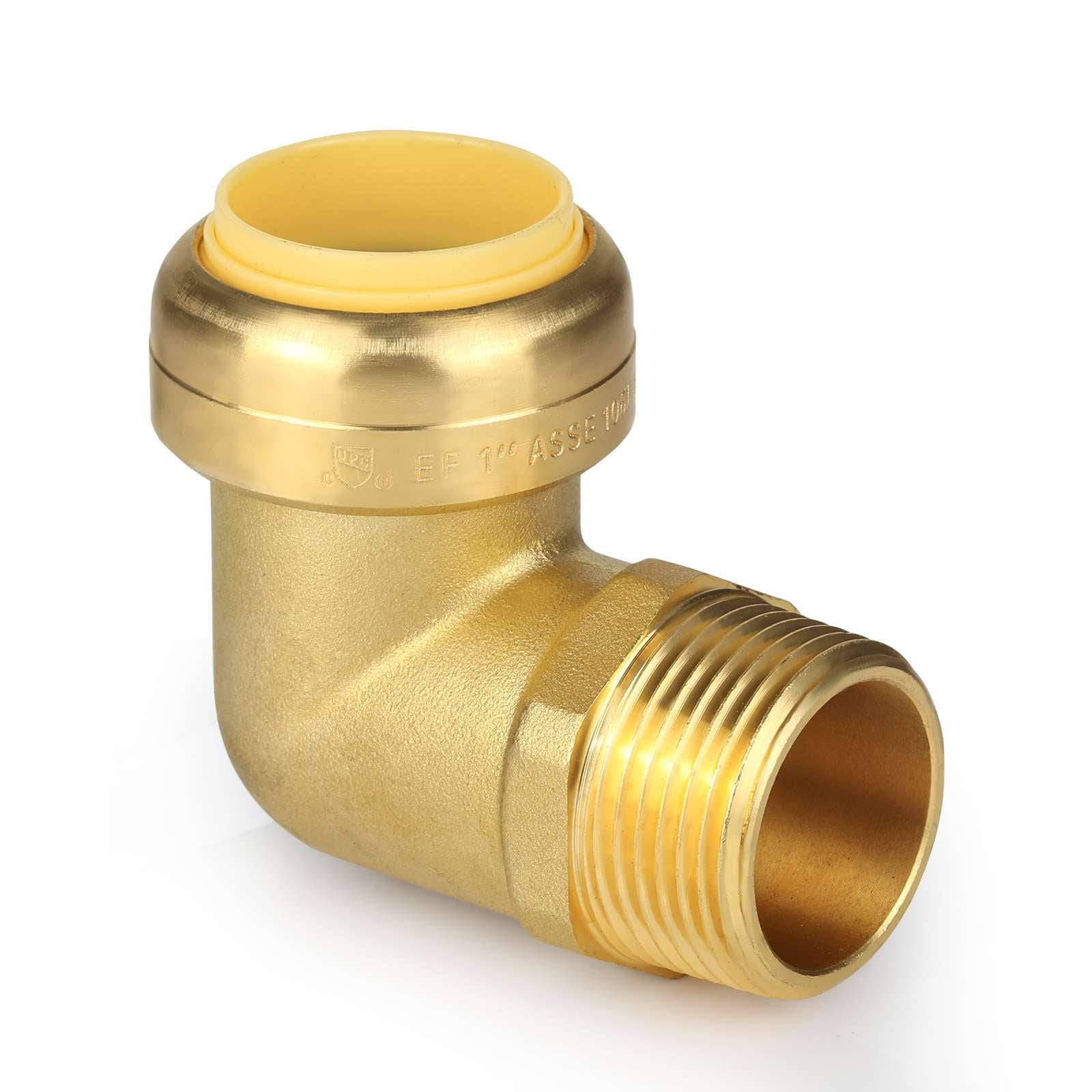 - 1 Inch x 1 Inch Male NPT Threaded Elbow Push to Connect Pex Copper, CPVC with a Disconnect Clip Tool, Lead Free Brass