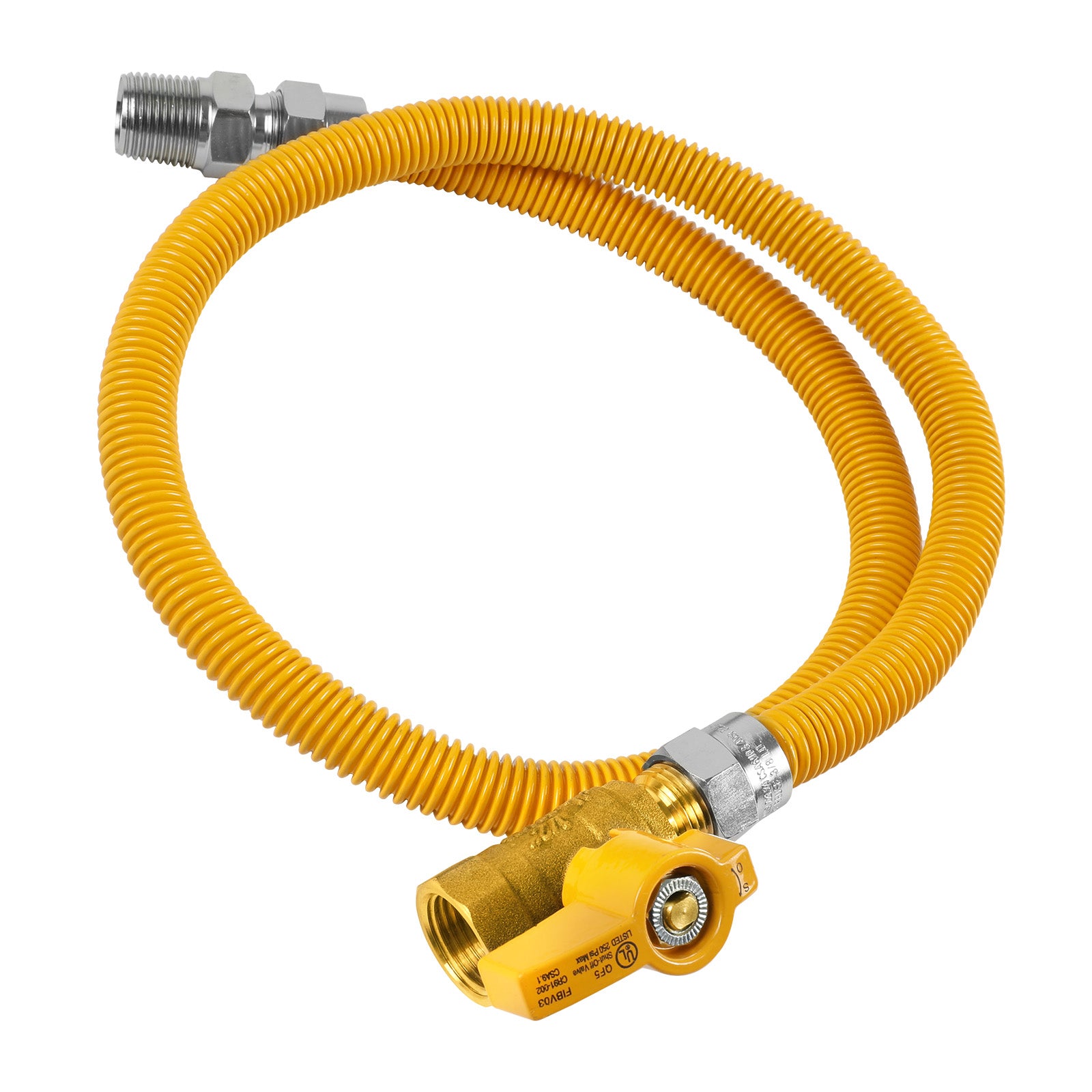 1/2" OD 1/2" MIP x 1/2" FIP Ball Valve Coated Stainless Steel Gas Connector (48" Length)