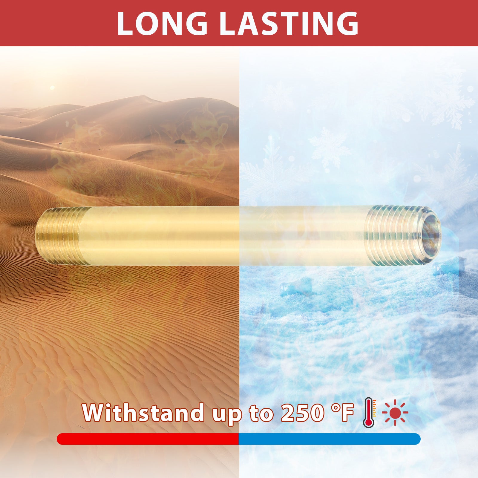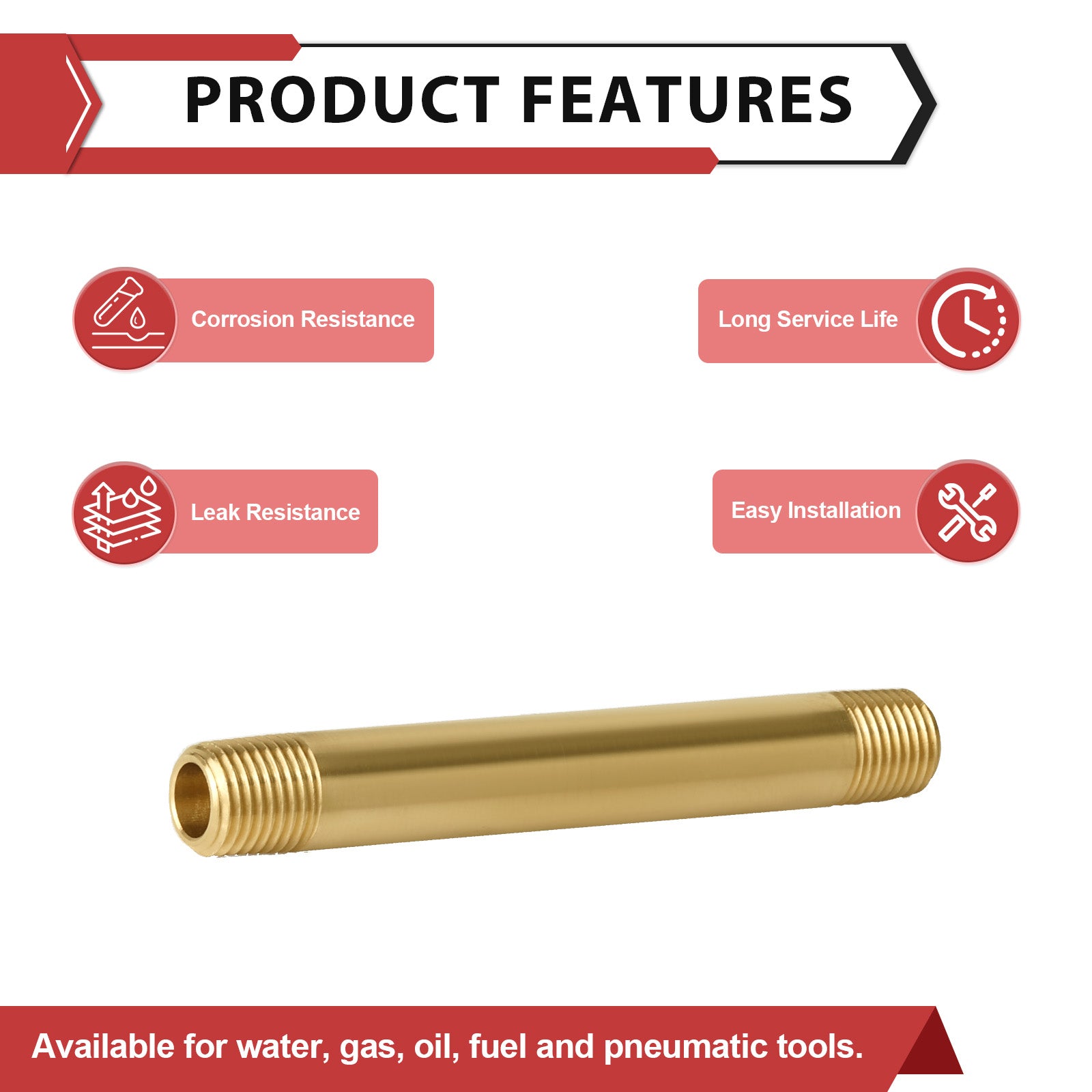 - Brass long nipple for connecting two threaded pipes and extending pipe length.