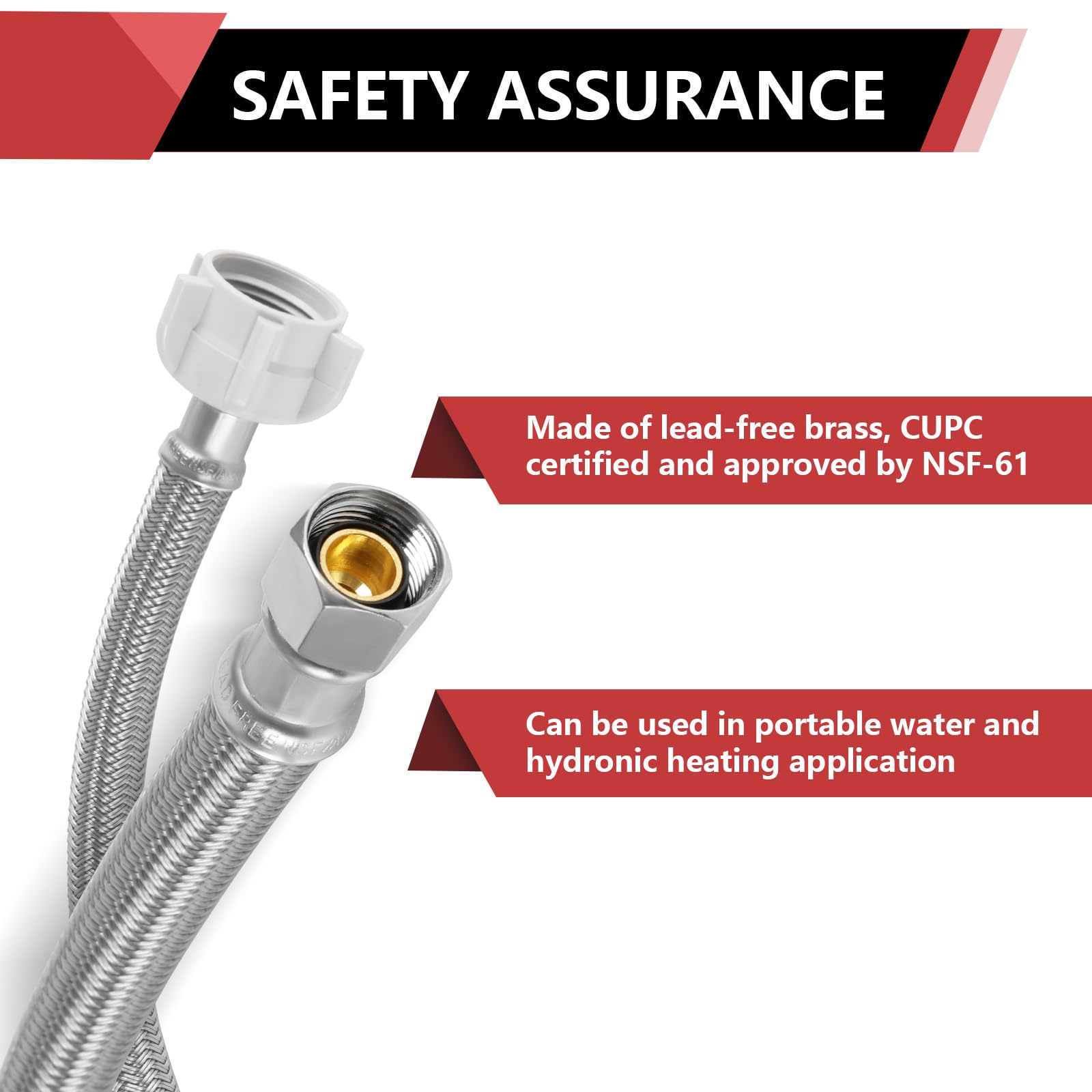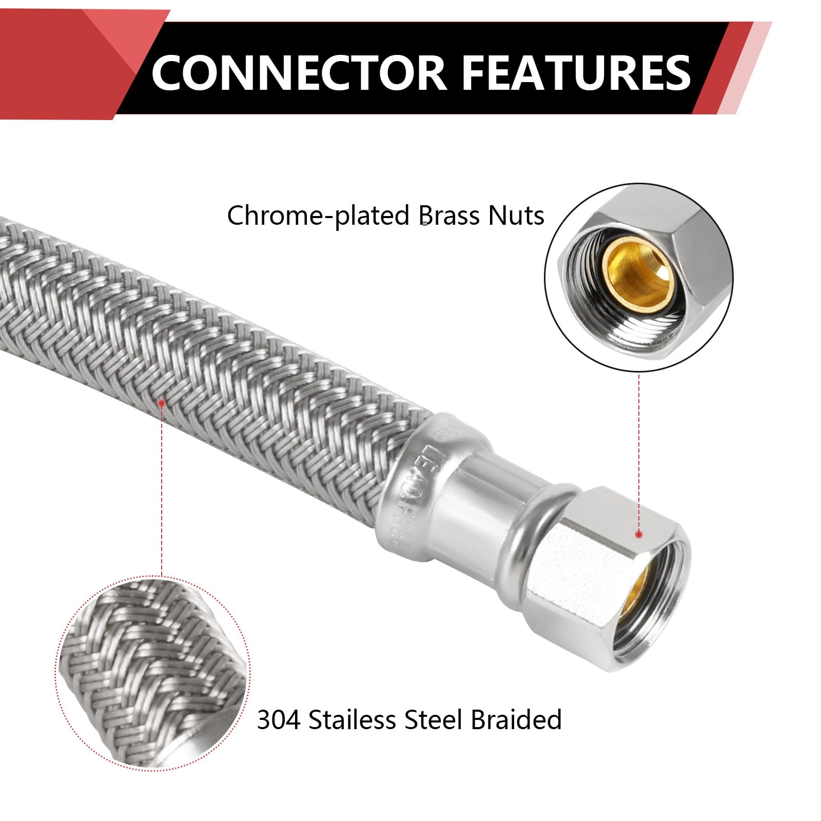 - Flexible Polymer Braiding: Polymer braided design ensures strength and flexibility, making installation quick and easy