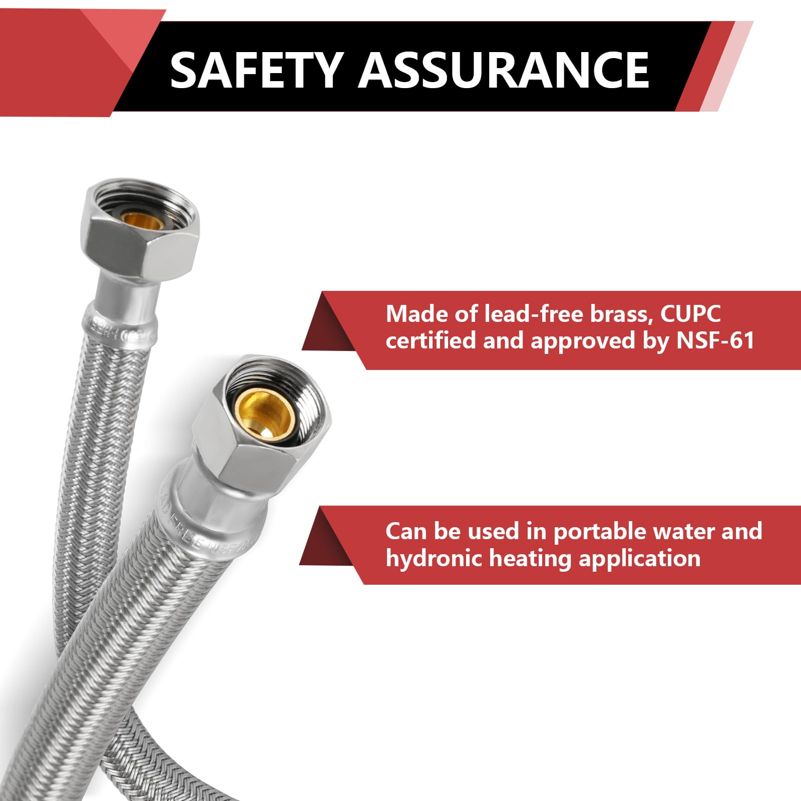 - Flexible Polymer Braiding: Polymer braided design offers strength and flexibility, making installation in tight spaces simple