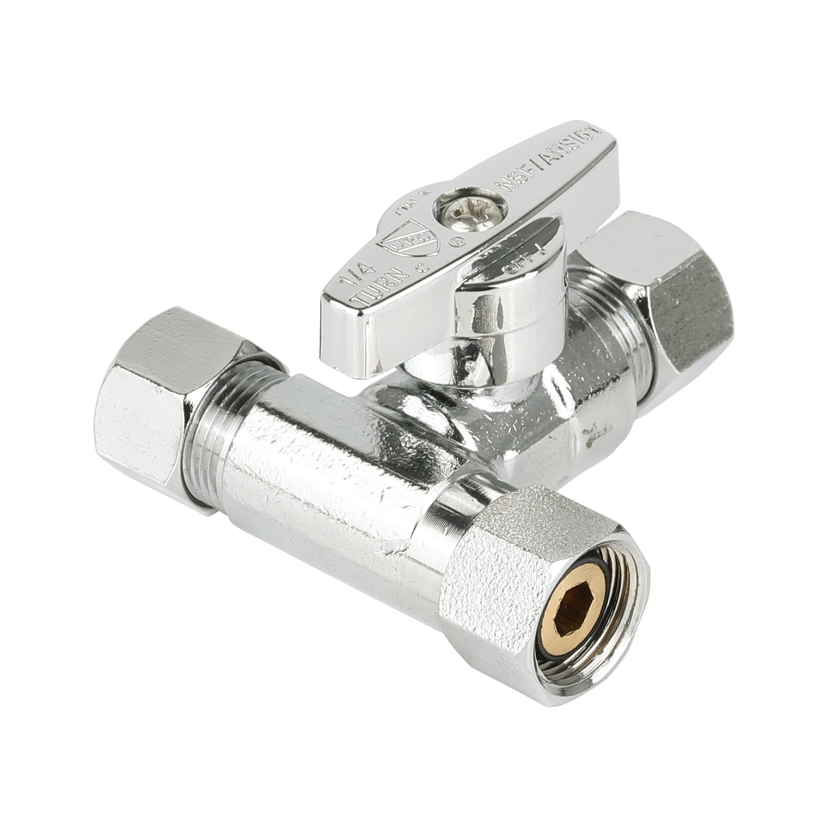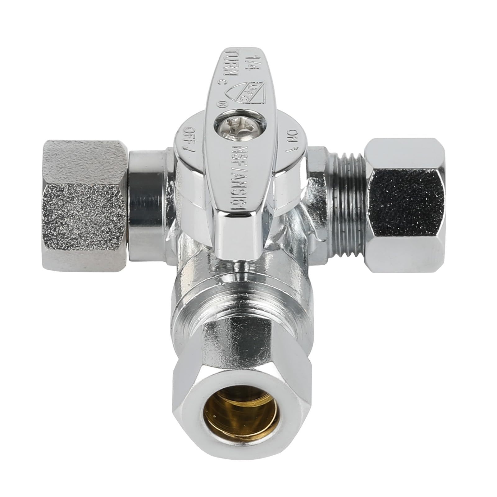 3/8" Compr. x 3/8" Compr. x 1/4" Compr. Tee Stop Valve, 1/4 Turn (Lead Free)
