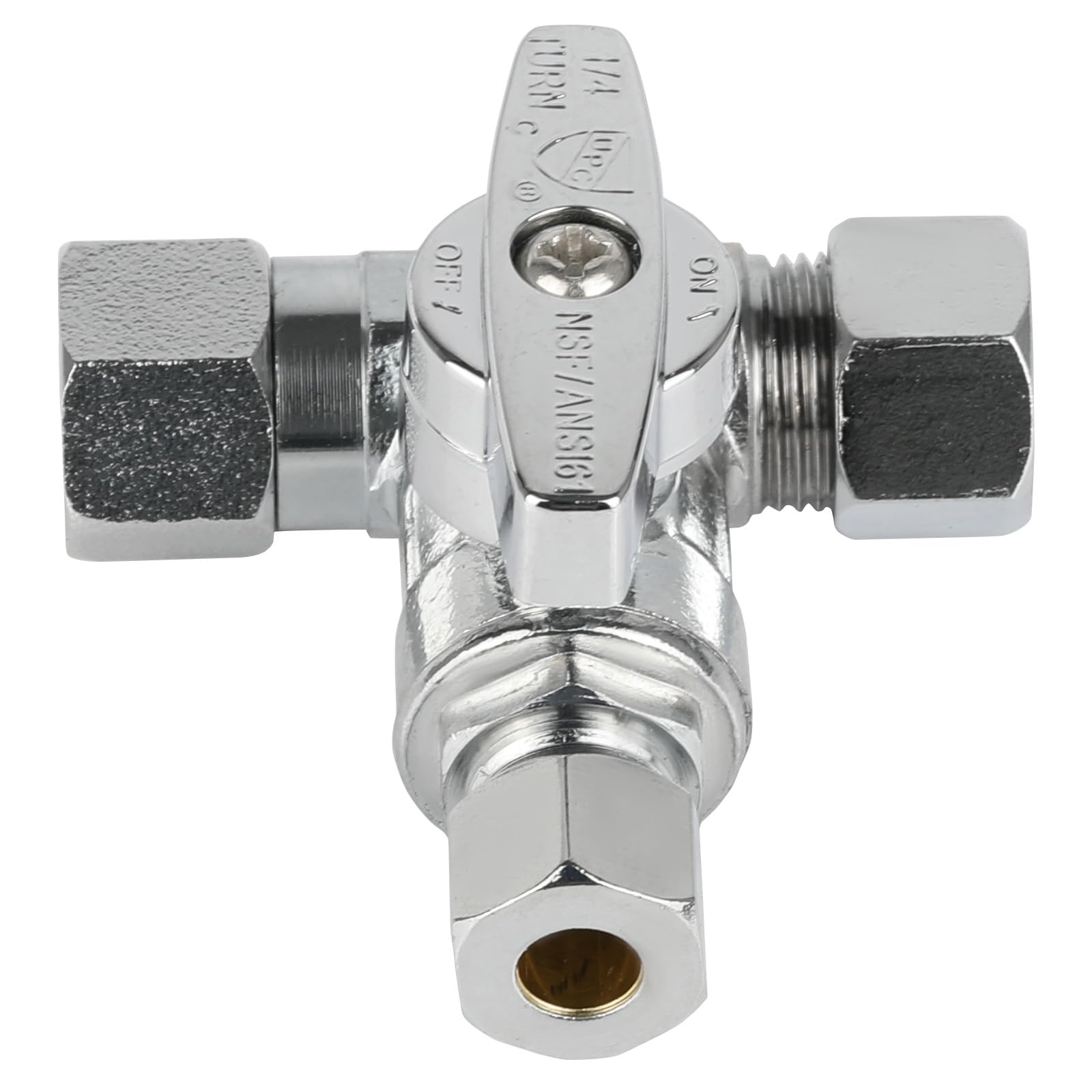 3/8" Compr. x 3/8" Compr. x 3/8" Compr. Tee Stop Valve, 1/4 Turn (Lead Free)