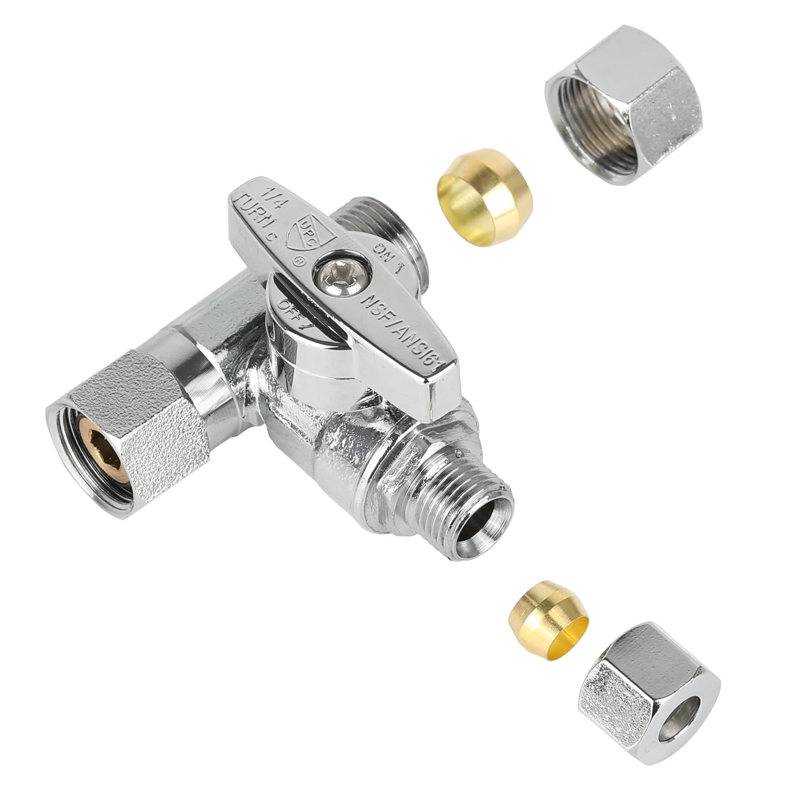 - 3-Way Shut-off Valve Made of LF Brass and a Chrome-Plated Finish For Cold or Hot Water Application