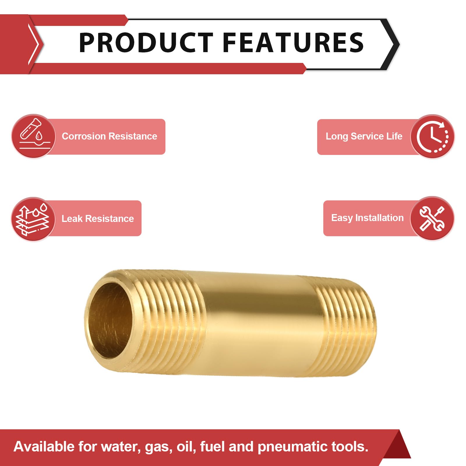 - Brass long nipple for connecting two threaded pipes and extending pipe length.